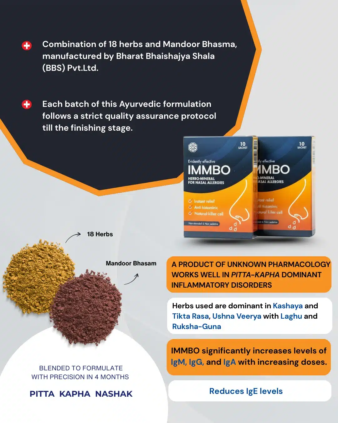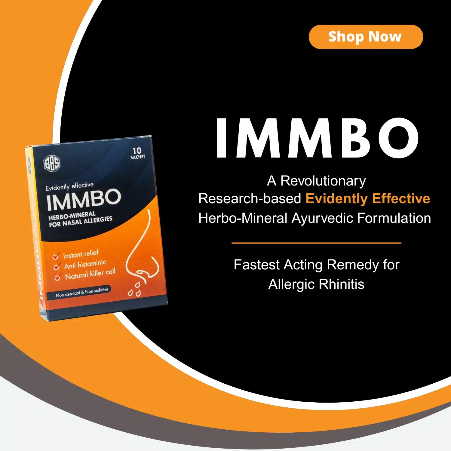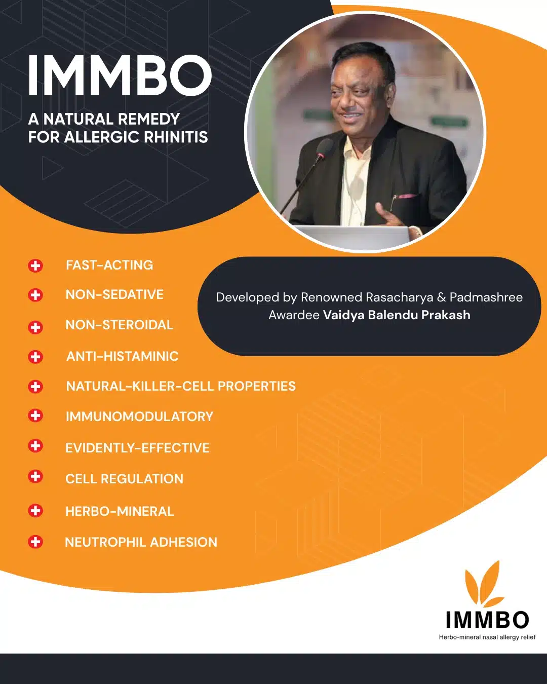 IMMBO is a herbo-mineral ayurvedic formulation, providing non-drowsy, non-steroidal relief for allergy sufferers.