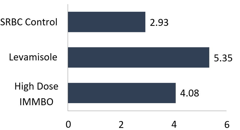 Mid dose IMMBO showed neutrophil adhesion comparable to Levamisole.